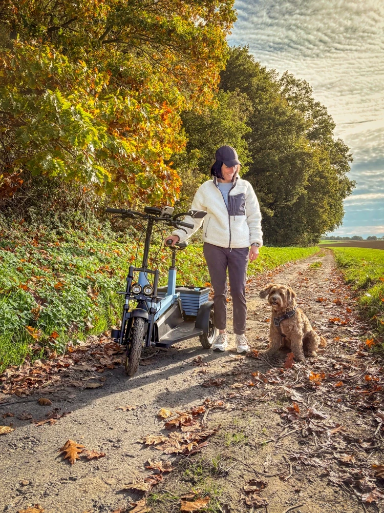 Toen haar wandelingen korter werden, maakte ze een afspraak voor een proefrit. “Ik plande een proefrit aan huis. De Joiny reed wendbaar en stabiel, en ik had meteen het gevoel: hiermee kan ik weer mee.”
